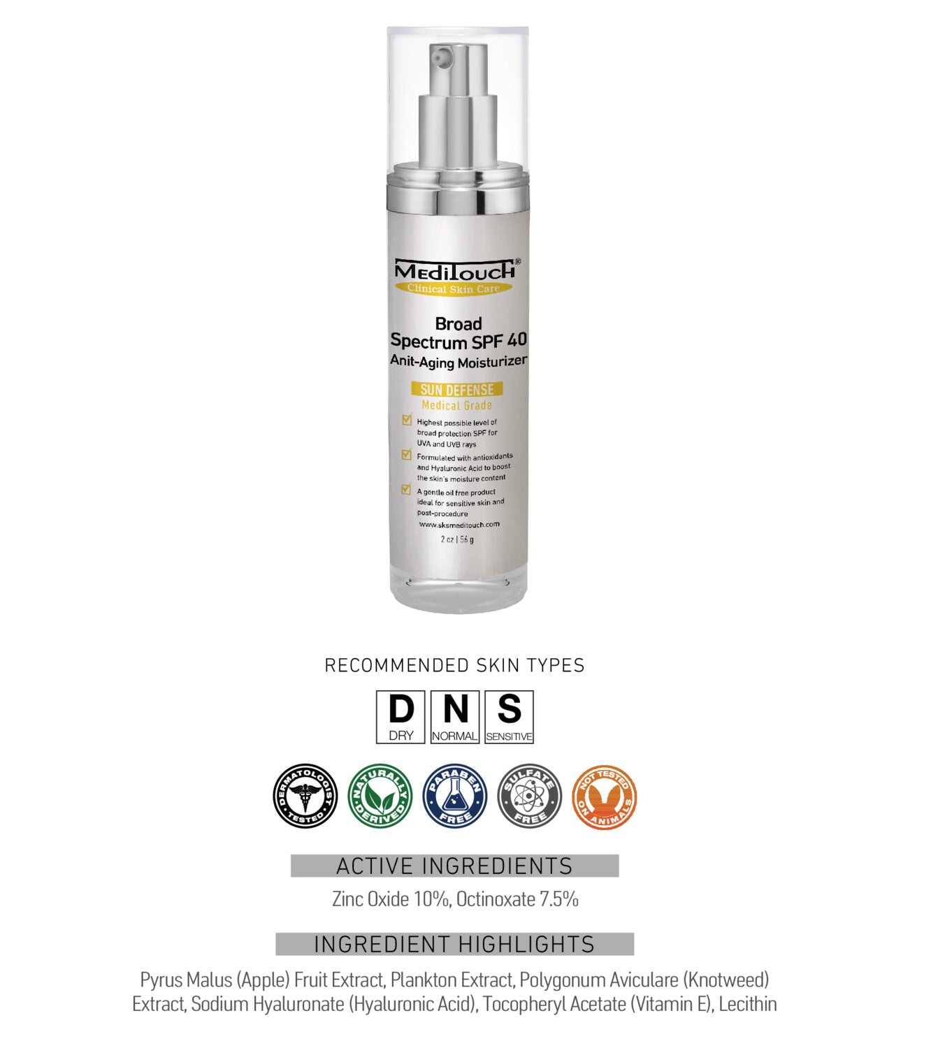 Broad Spectrum, a lightweight SPF 40 Oil Free, contains an innovative blend of active ingredients. Protecting skin from multiple extrinsic factors known to cause premature aging, including UVA, UVB & Infrared Radiation. Delivering a new strategy in sun protection, Broad Spectrum SPF 40 Oil Free will provide the highest possible level of protection while restoring youthfulness to the skin. Derived from Knotweed Extract, our botanically based active is the first of its kind, preventing damage from infrared radiation, which is believed to be just as detrimental to skin health as UVA & UVB. This fast-absorbing SPF also features a high level of Niacinamide to promote a smoother, clearer complexion.